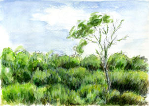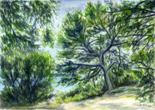Pinien, Giens (2021, Aquarell, 21 × 29,7)