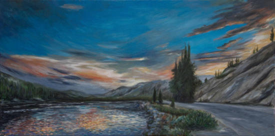 Sonnenuntergang, Tenaya Lake, Yosemite National Park (2021, Acryl, 40 × 80)