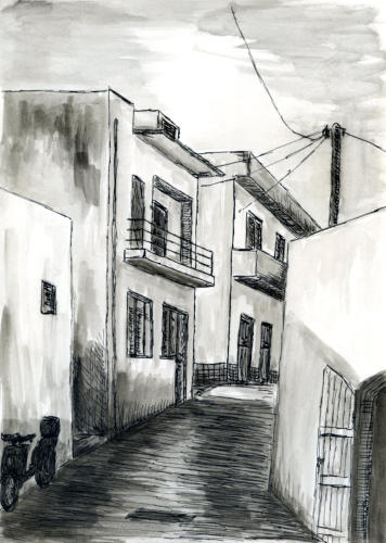 Makry Gialos (2018, Feder, laviert)