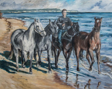 Polopferde am Ostseestrand (2019, Acryl, 60 × 80)