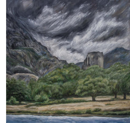 Dolbardan Castle, Wales (2021, Acryl, 70 × 70)