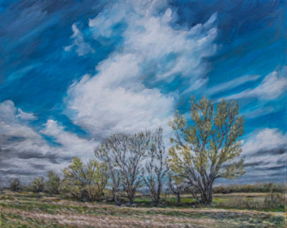 Feld bei Schenkendorf, Frühlingstag (2021, Acryl, 40 × 50)