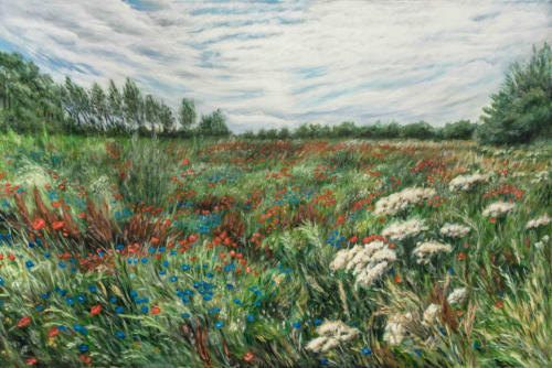 Wiese mit Mohnblumen bei Ahrenshoop (2021, Acryl, 60 × 90)