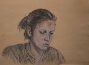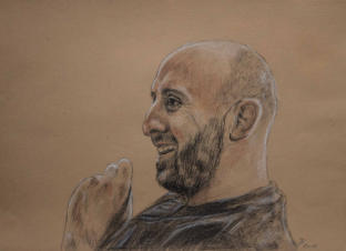 J.A. auf M.S. (2018, Trois crayons, 24 × 34)