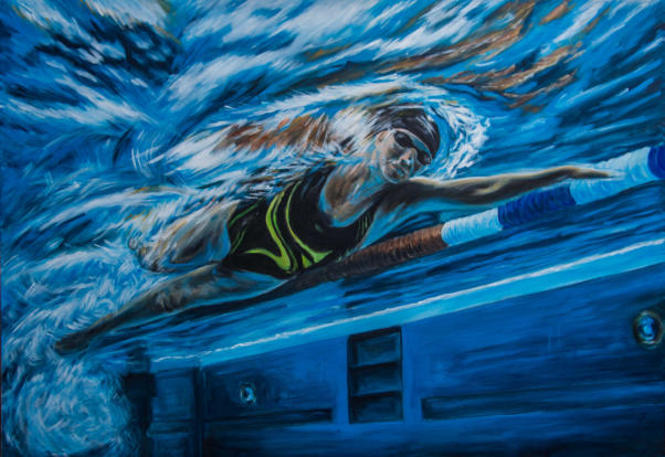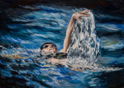Schwimmerin (Grit) (2021, Acryl, 100 × 70)
